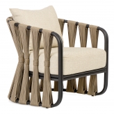 Πολυθρόνα σαλονιού PAPASAN από συνθετικό υλικό αρίστης ποιότητας τύπου Rope με χρώμα Beige τοποθετημένο πάνω σε σκελετό αλουμινίου. Η βάση είναι από μασίφ ξύλο Teak πιστοποιημένο βάση του κανονισμού FSC σε χρώμα Natural. Το ύφασμα του μαξιλαριού είναι Sunproof® by Ateja το οποίο απωθεί το νερό και είναι ανθεκτικό στην ηλιακή ακτινοβολία, σε χρώμα beige. Kκατάλληλη για χρήση σε εξωτερικό ή εσωτερικό χώρο. Κατά την χειμερινή περίοδο συνιστούμε να φυλάσσεται σε εσωτερικό χώρο χωρίς υγρασία για να διατηρηθεί το χρώμα. Τα μαξιλάρια να φυλάσσονται χωριστά.